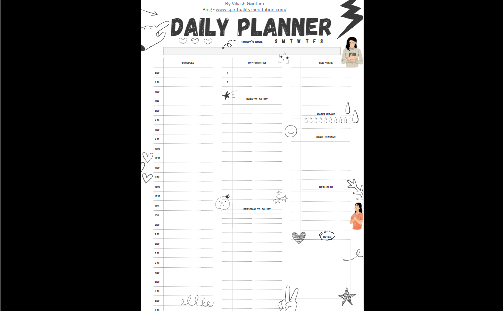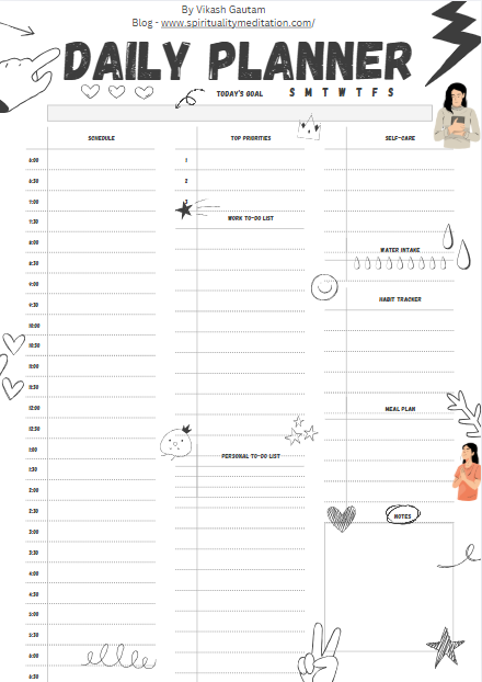 Designed by Vikash Gautam (Spirituality & Mindfulness Blogger at spiritualitymeditation.com), this planner blends productivity with peace, and structure with self-awareness.