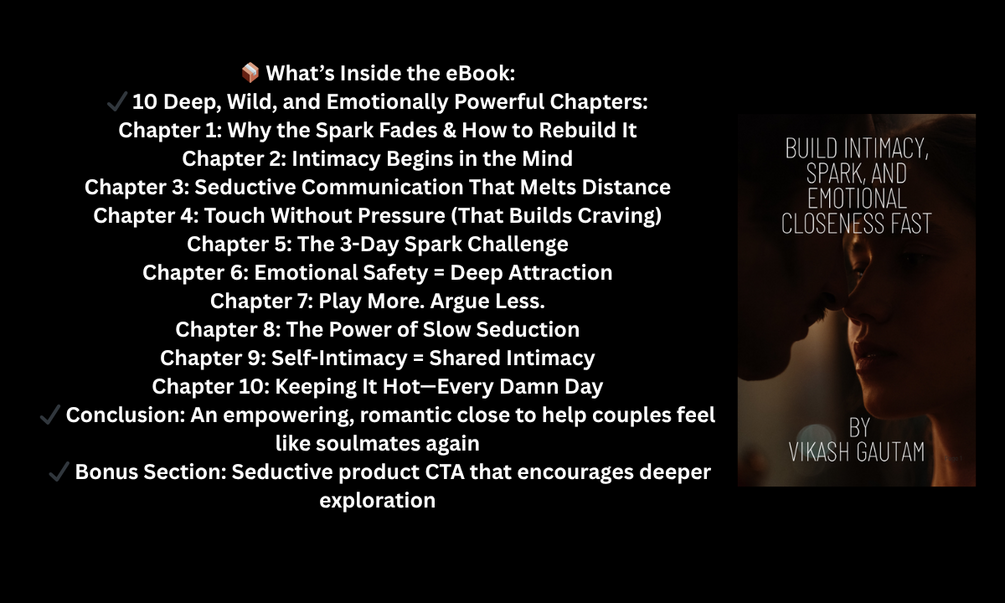 “Hot Again” is your 10-chapter emotional and seductive guide to reigniting intimacy, rebuilding emotional connection, and bringing back the playful, passionate energy you once had.